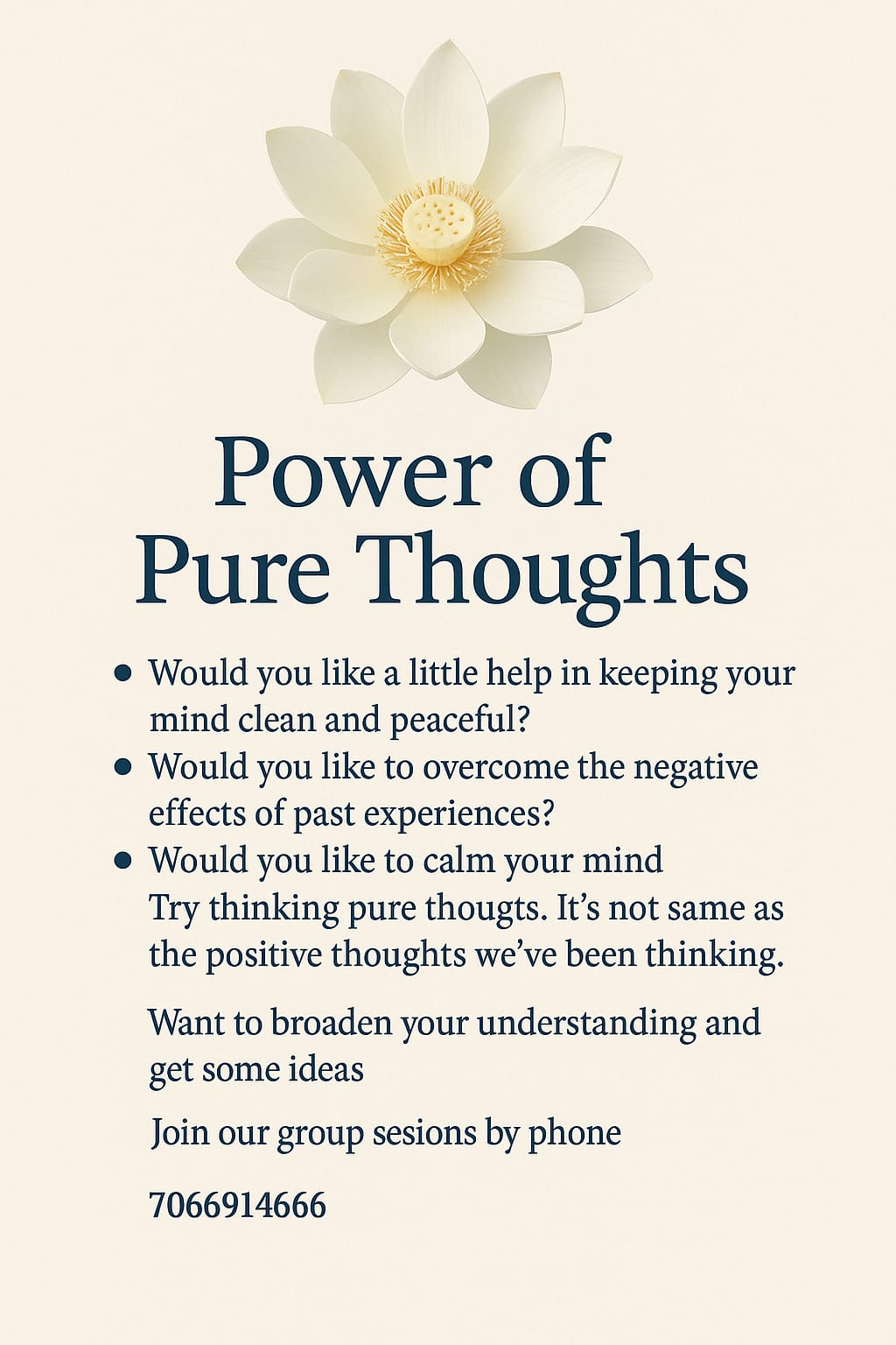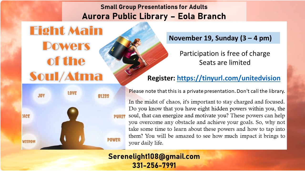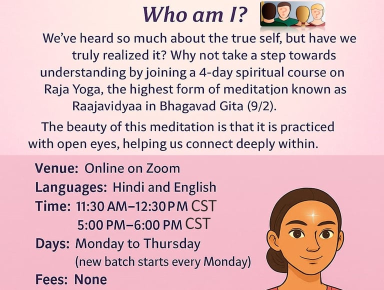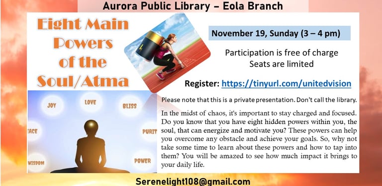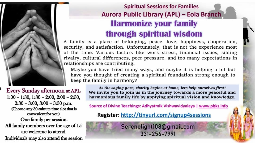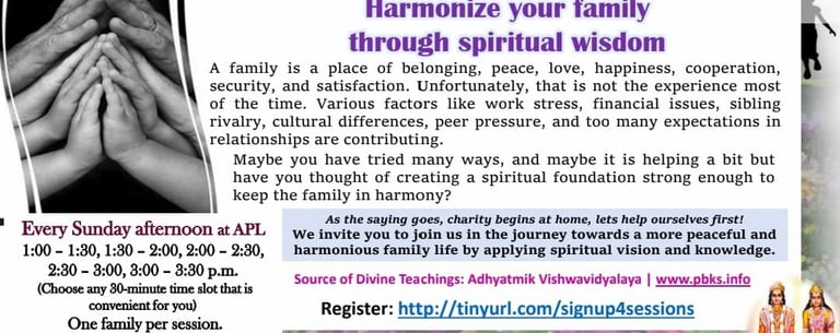 Here, you'll learn simple techniques for deep meditation, gain new perspectives for elevated vision, and discover ways to cultivate pure thoughts. You'll also receive information about our weekly programs for adults, children, and teens.